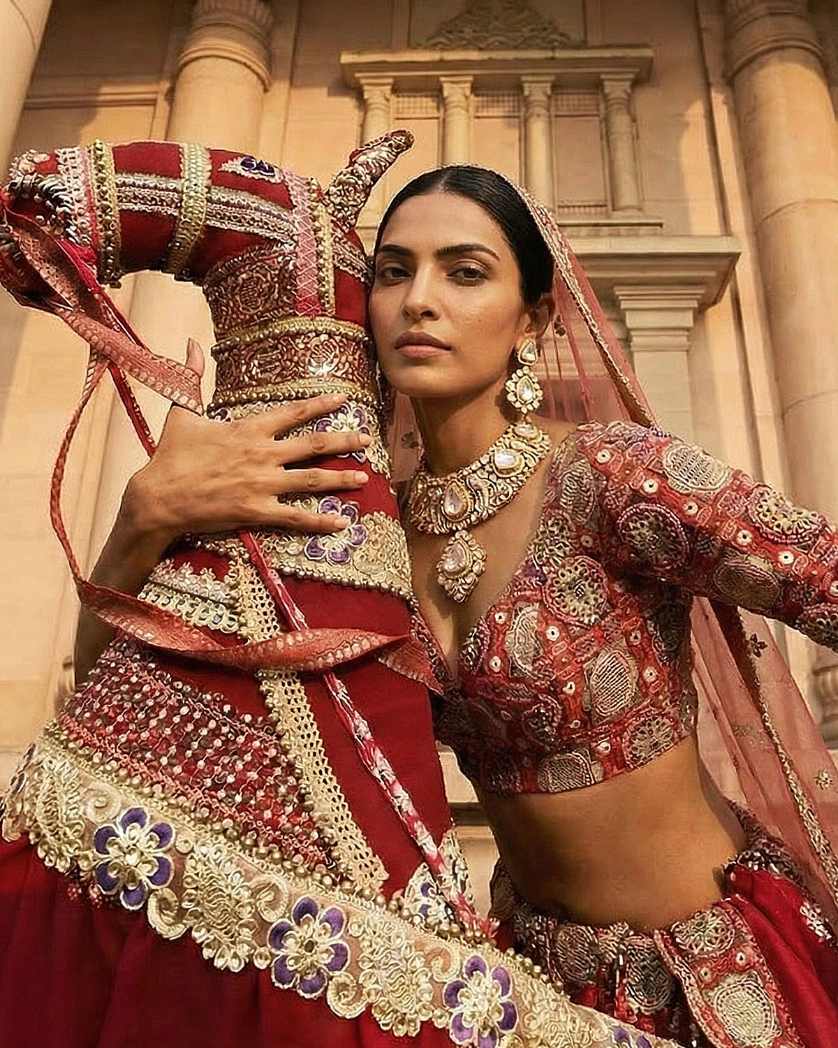 Experience the raw, unfiltered essence of Rajasthan — sun-warmed earth, sandstone architecture, and the quiet strength of legacy. The jewellery is crafted in Polki, rubies, and gold, these pieces carry a certain weight — both visually and culturally. Designed for the bride who honors where she comes from, these are anchoring pieces — meant to ground the look, much like Mitti grounds identity. Strong, timeless, and unapologetically rooted.